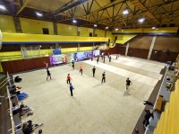 - Крытый манеж площадью 600 м2 с покрытием, выполненным по бестравматической технологии, позволяет проводить любые спортивные мероприятия, с участием большого количества спортсменов и зрителей. Отличное освещение зала и продуманная вентиляция позволяет проводить тренировки и соревнования по большому теннису, мини-футболу,волейболу и баскетболу.